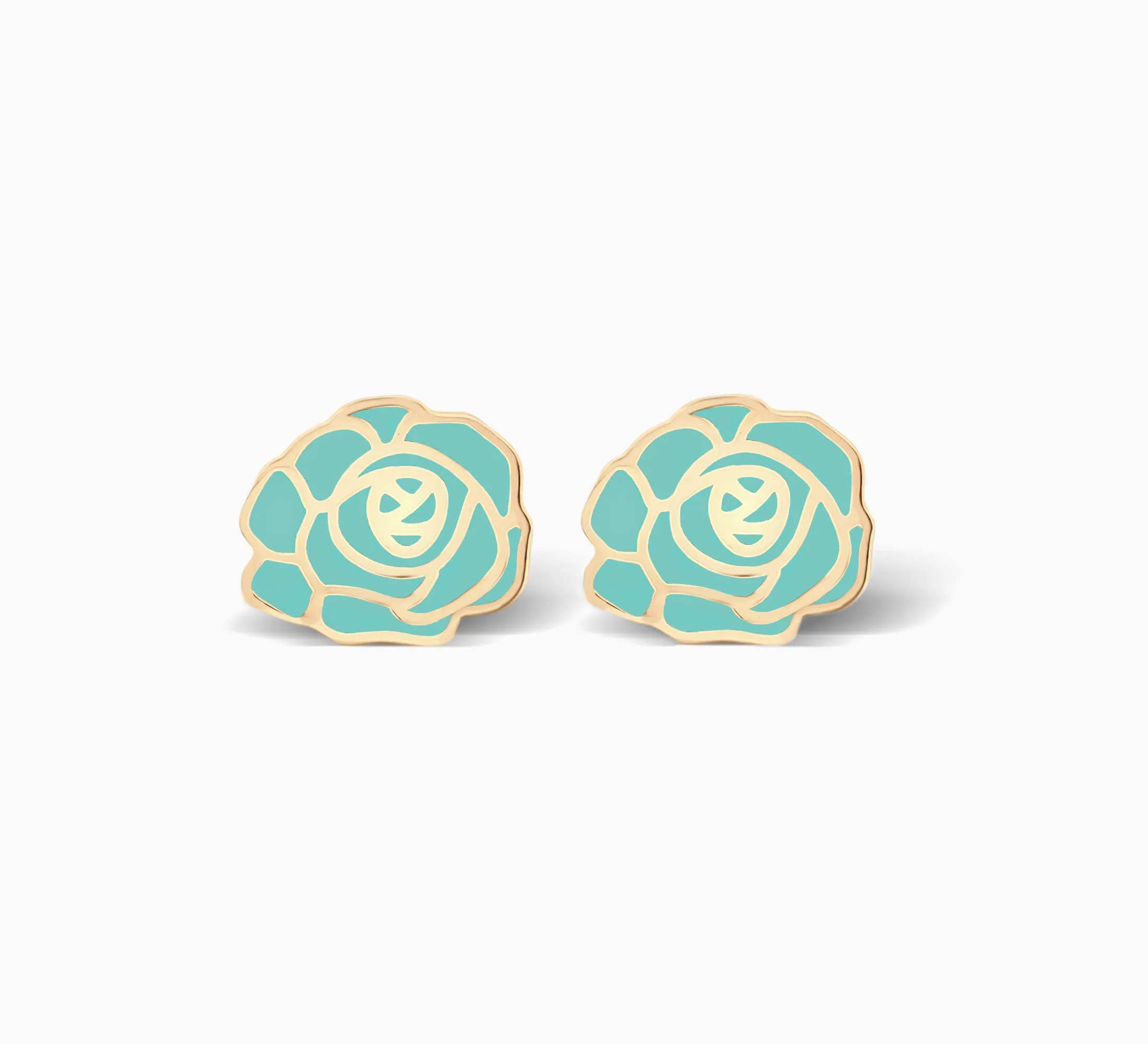 Elevate your everyday style with the Turquoise Bloom Stud Earrings. These gold tone earrings feature a charming rose silhouette filled with vibrant turquoise enamel, blending playful color with elegant floral design. Perfect for spring vibes or vacation outfits, they add a cheerful touch to any jewellery collection.