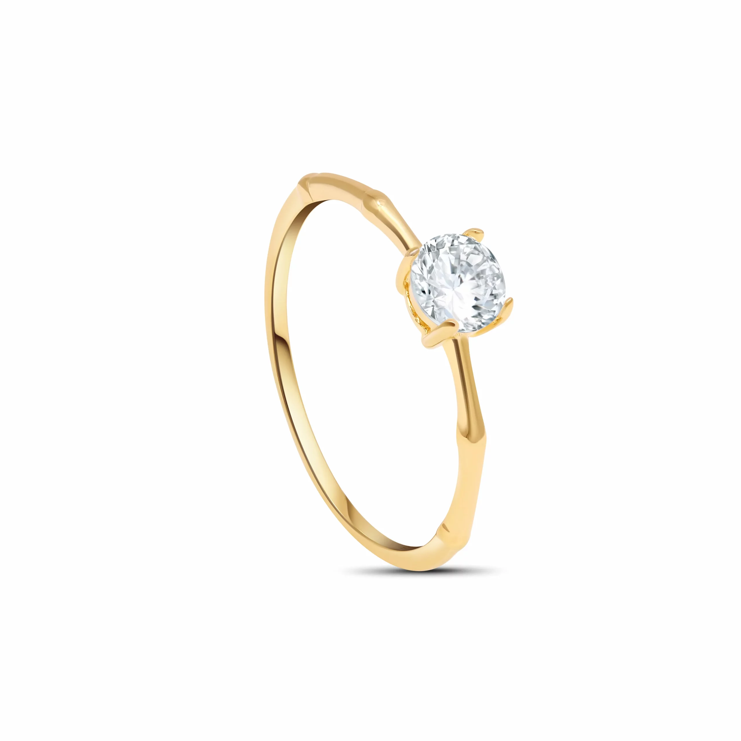 Effortlessly graceful, the Veloura Ring features a radiant round cut cubic zirconia cradled in a slender, organically shaped gold plated ring. Crafted from fine sterling silver, its nature inspired silhouette blends modern simplicity with artisanal charm. Whether gifted, stacked or worn solo, this elegant solitaire reflects strength, softness and refined individuality.