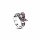 Velvet Revolve is not just a ring, it’s a statement of fearless elegance. Wrapped in a dynamic swirl, this sterling silver piece dazzles with a constellation of crimson ruby pink and jet black pave stones, creating the illusion of motion in stillness. With its asymmetrical silhouette and captivating sparkle.