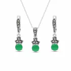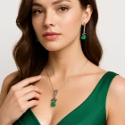 Evoke regal elegance with the Verdant Heirloom Pendant Set, featuring a radiant green gemstone cradled beneath a crown inspired design. Handcrafted in antique finished sterling silver and adorned with glistening marcasite accents, this pendant and matching earrings channel vintage sophistication with a modern twist.