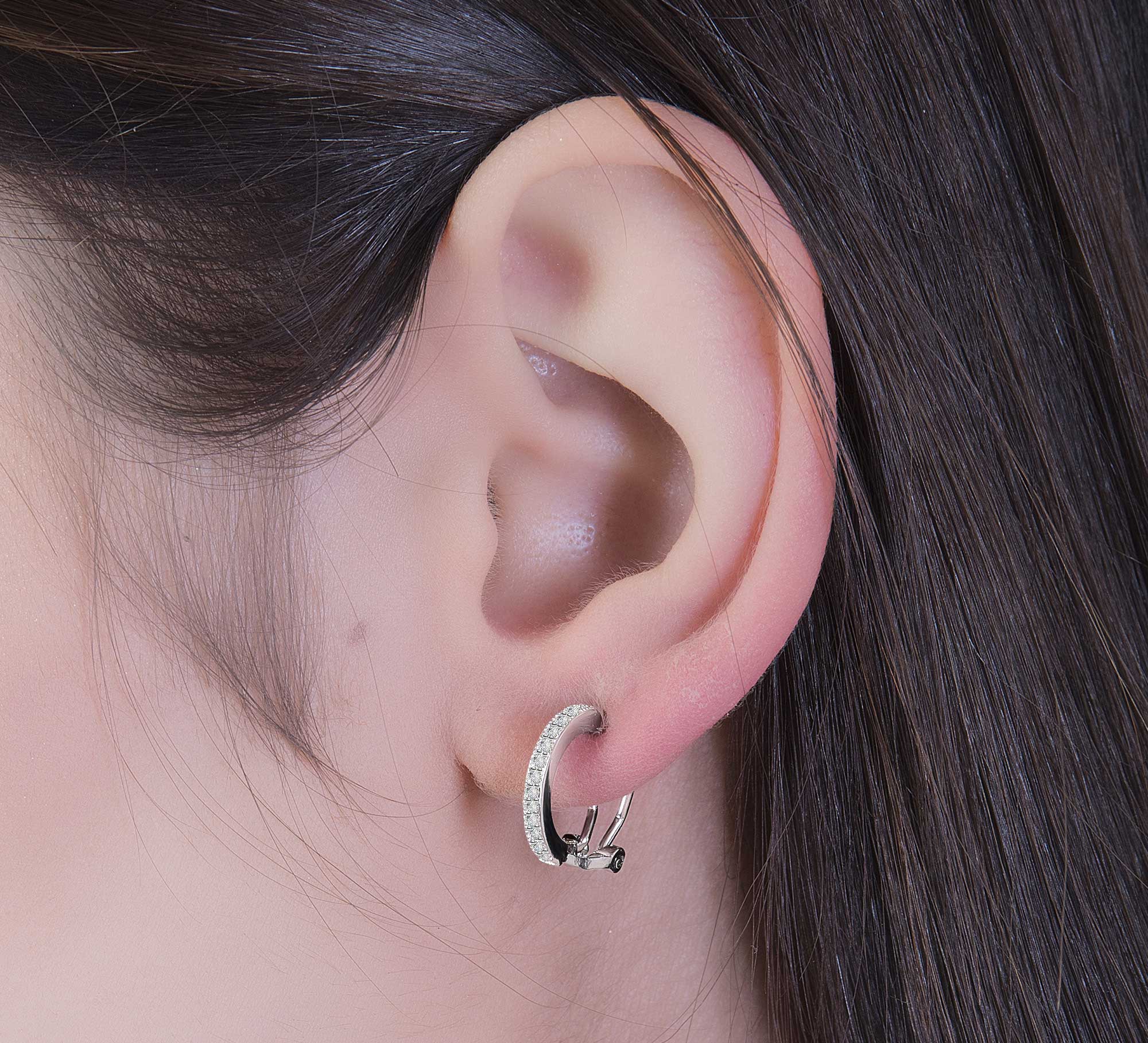 Redefine contemporary luxury with the Verite Huggie Earrings, meticulously crafted from 925 Sterling Silver and encrusted with precision cut pave cubic zirconia. The distinctive interlocking geometric design channels strength and sophistication in equal measure, offering a powerful statement in a refined profile.