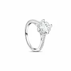 The Vespera Solitaire Ring is a luminous ode to timeless elegance. Crafted in hallmarked 925 sterling silver, it features a brilliant round cut cubic zirconia centerpiece elevated by a graceful pave set band for radiant sparkle from every angle. Sophisticated prong detailing adds enduring allure to this classic design.