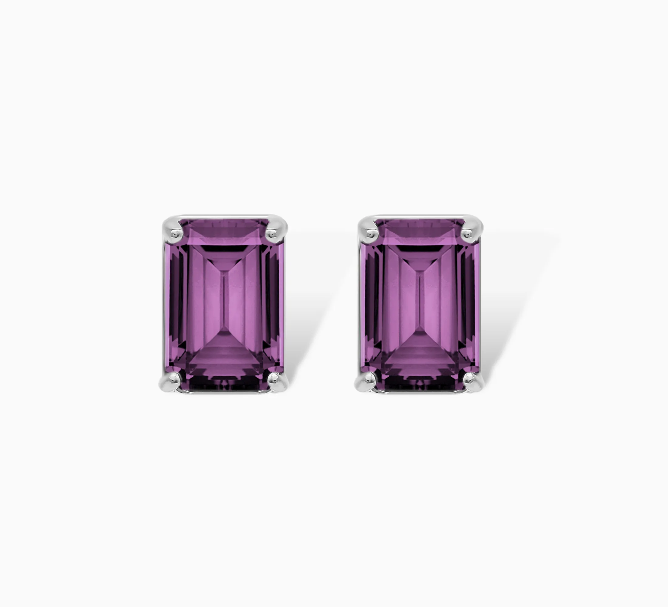 Add a pop of color to your collection with the Violet Radiance Stud Earrings. These purple gemstone stud earrings showcase a bold emerald cut violet crystal, elegantly set in 925 Sterling Silver. The clean lines of the prong setting and the rich hue evoke a look that’s both modern and timeless.