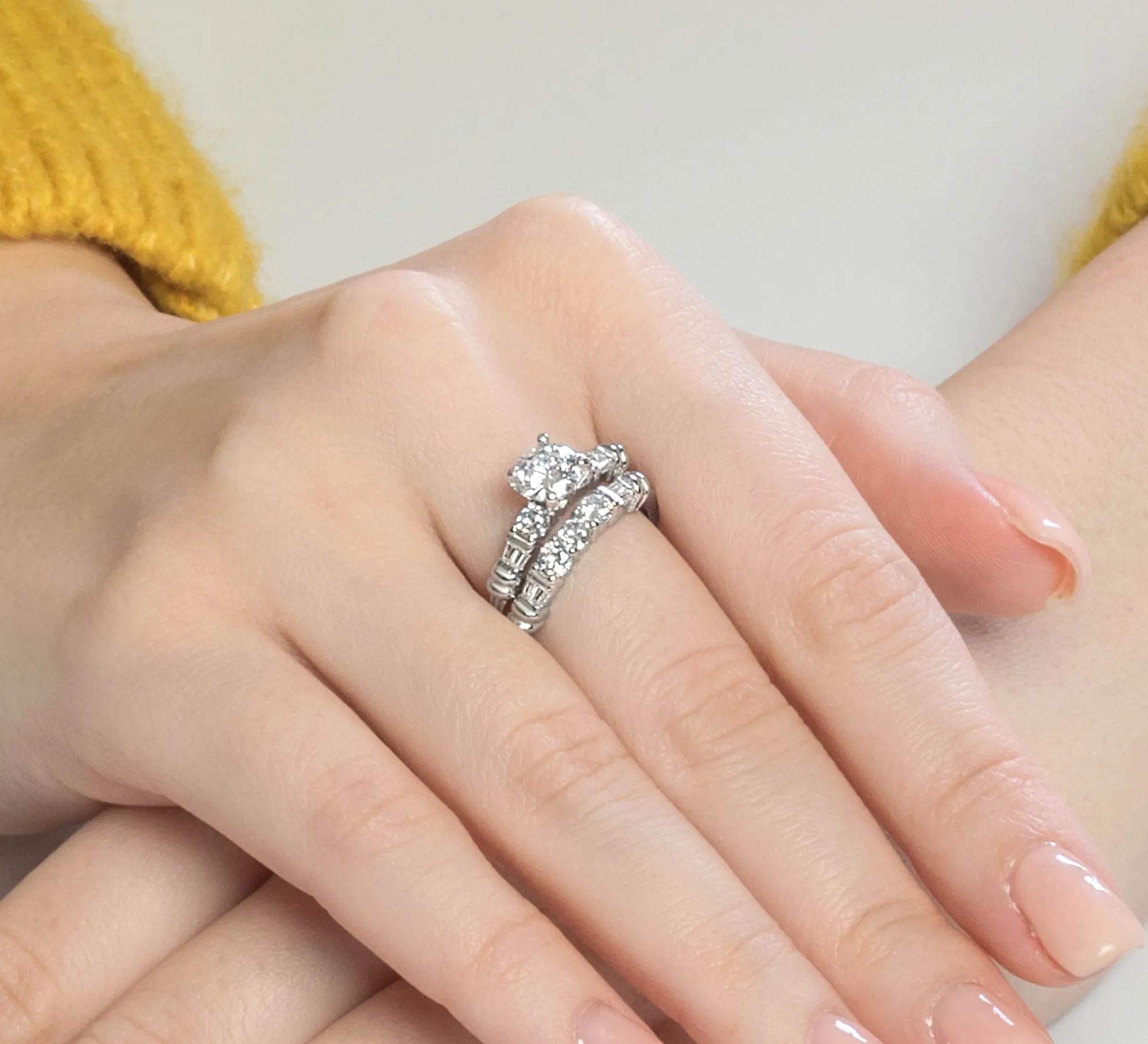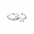 Refined and radiant, the Virellia Duet Set Ring pairs a luminous round cut cubic zirconia solitaire with an intricately balanced wedding band. Crafted in polished sterling silver, each ring showcases alternating baguette and round cut cubic zirconia accents for architectural elegance and uninterrupted brilliance. Worn together, they create a harmony of light, proportion and promise a modern heirloom for the one.