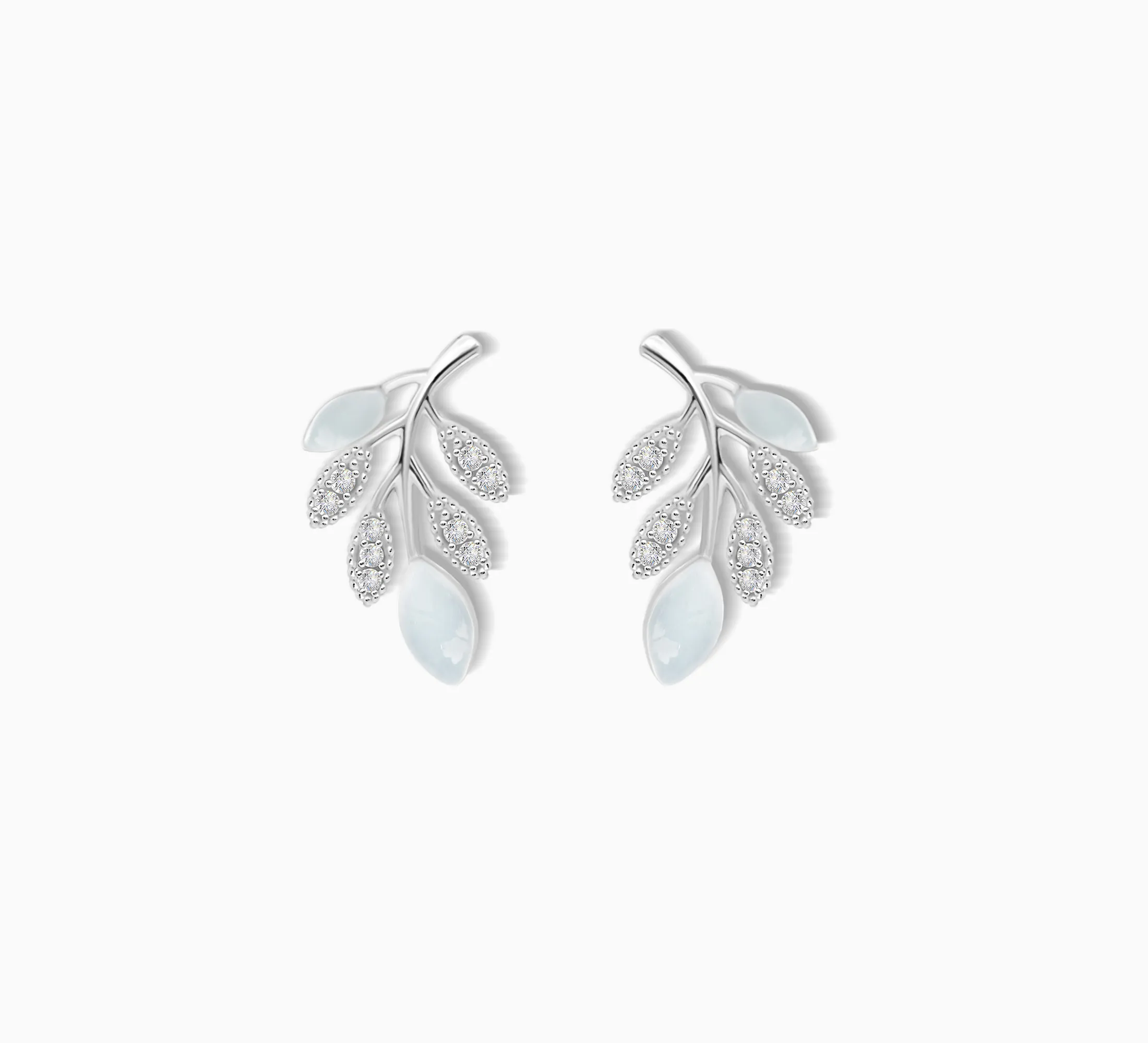 Delicate yet striking, the Winter Bloom Stud Earrings capture the quiet beauty of frost kissed foliage. Crafted in 925 Sterling Silver, each branch design features milky white enamel leaves paired with pave set cubic zirconia, creating a wintry shimmer that complements any look. Perfect for modern minimalists and nature lovers alike.