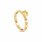 Boldly luminous, the Zyra Helia Ring captures solar energy in jewellery form. Crafted from sterling silver and plated in gold, its geometric hexagon band glows with yellow cubic zirconia and a bright round cut solitaire at its heart. A statement of individuality, power and light, this modern design is perfect for stacking or standing solo in unapologetic elegance.